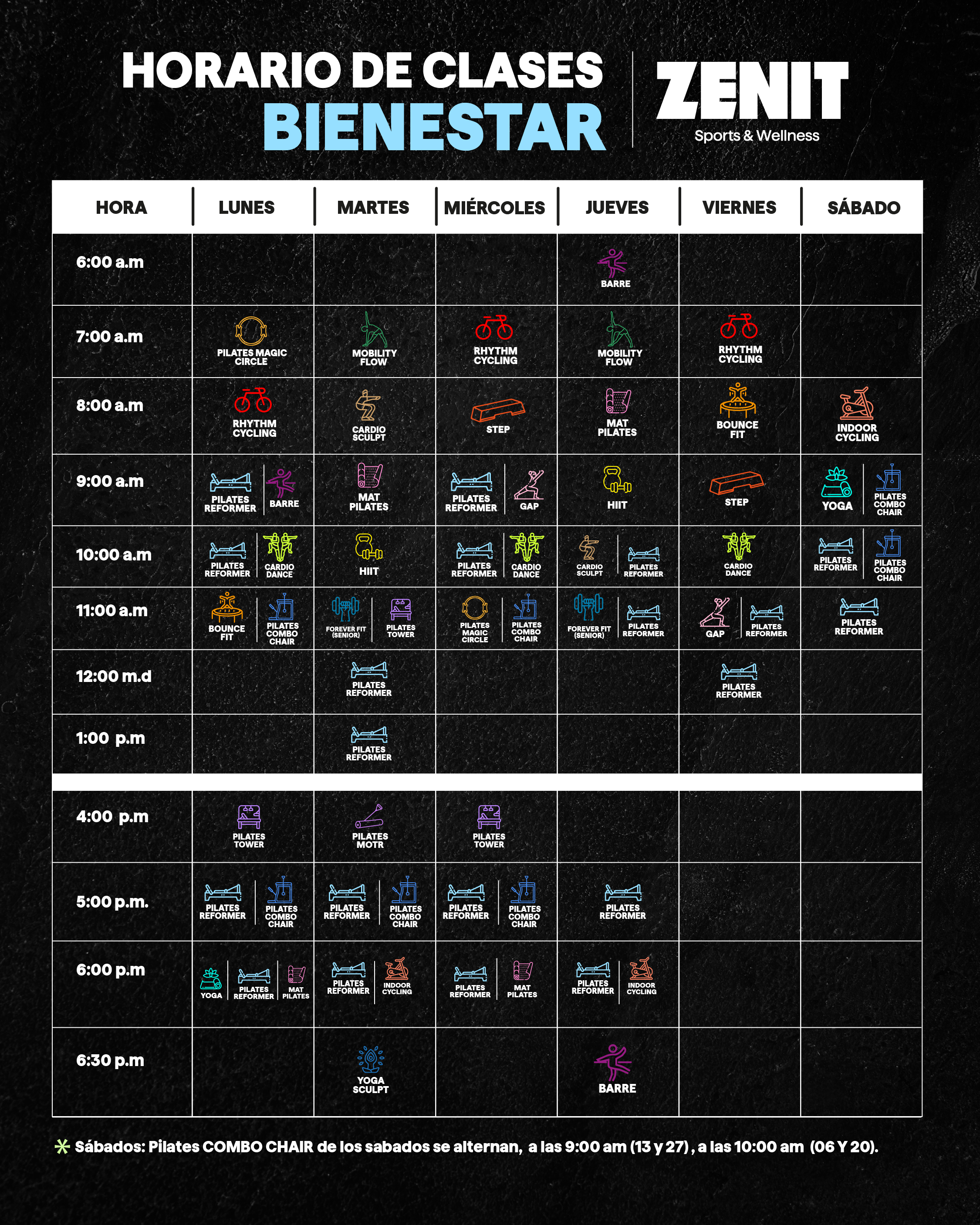 A continuación te mostramos los precios según tipo de plan y la lista de clases incluidas en cada modalidad.